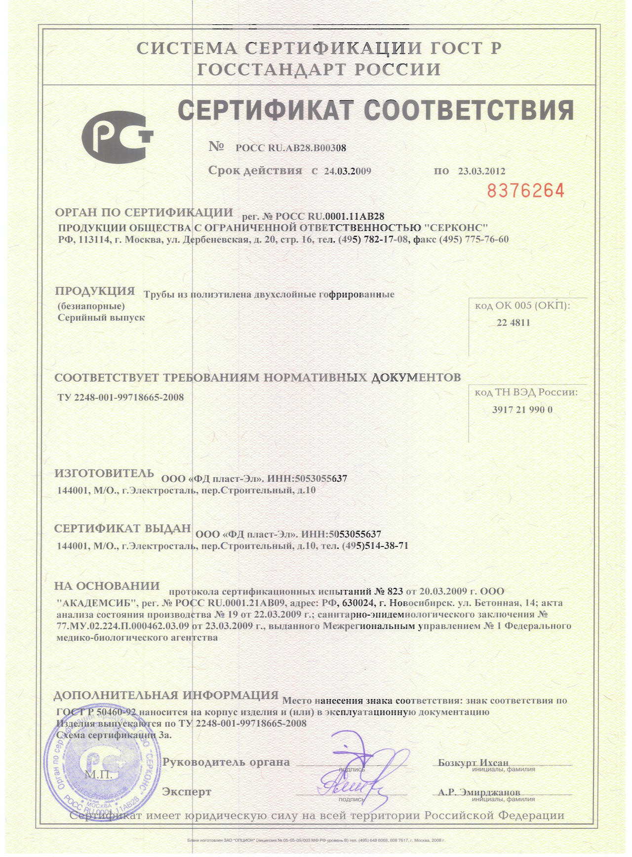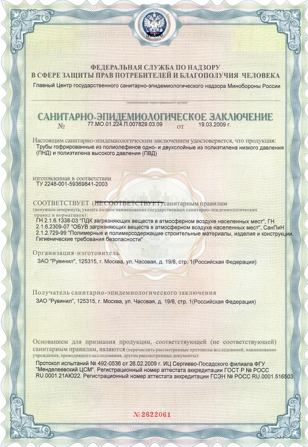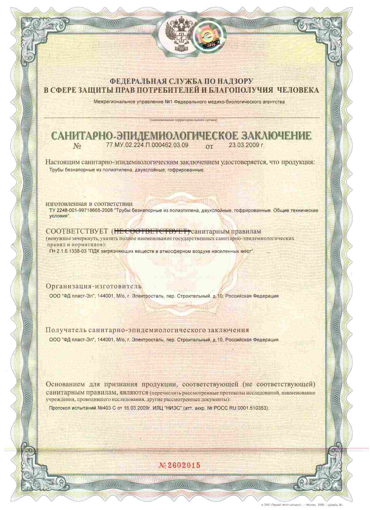 Гигиенический  2 Трубы гофрированные из ПНД Ø50-200 одно- двухстенные, дренажные 09.03.09 20.03.14