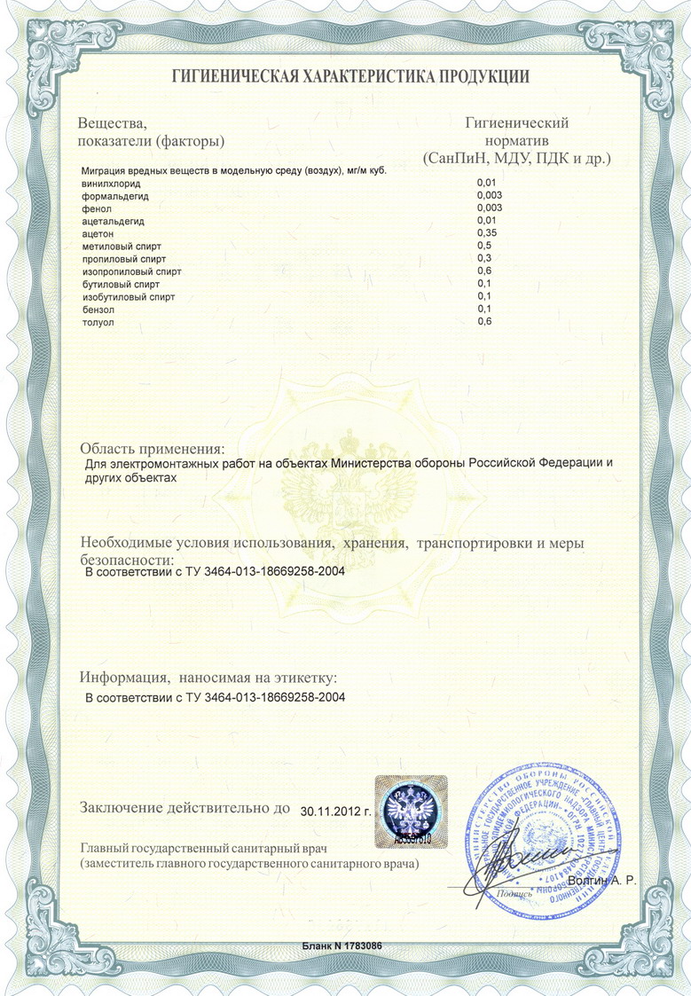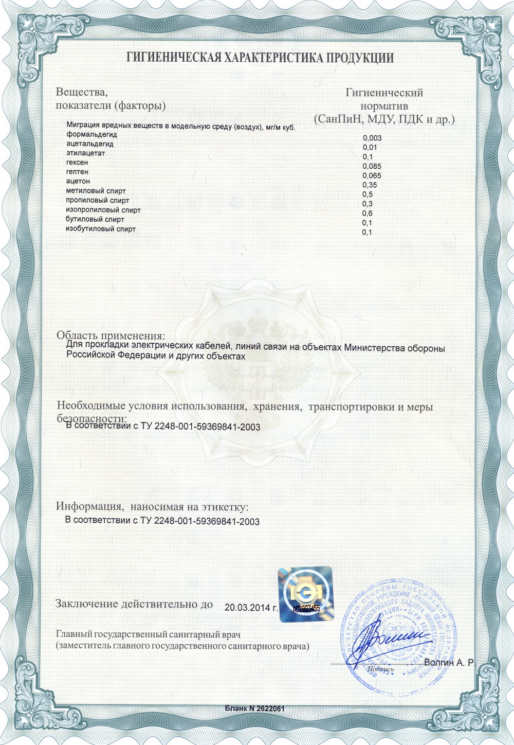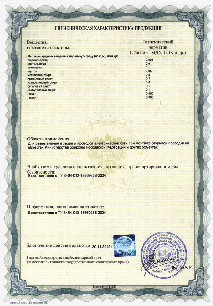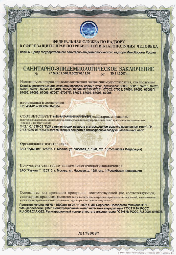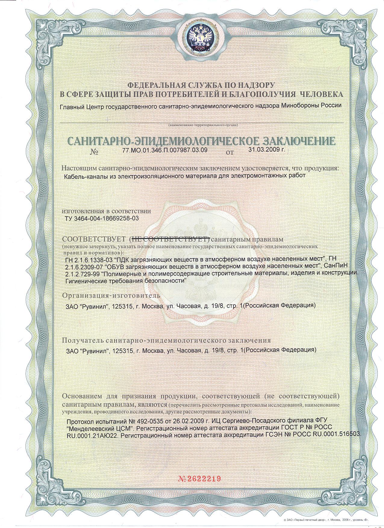 Гигиенический 2 Кабель-канал Рувинил Санитарно-Эпидемиологическое заключение 31.03.09 01.04.14