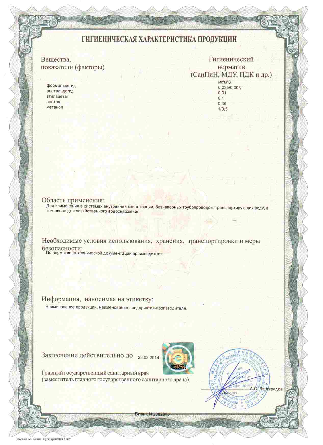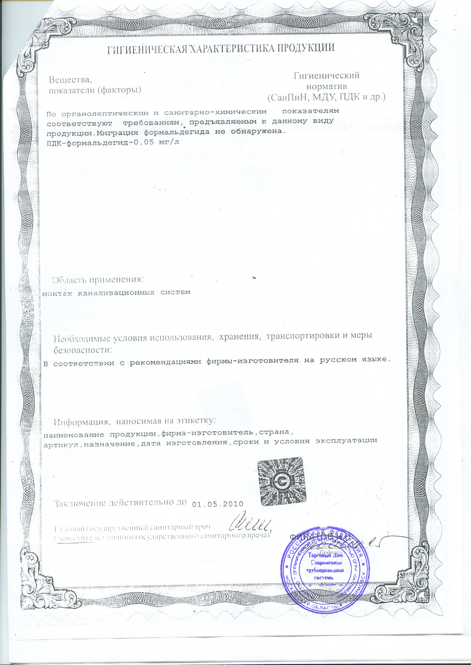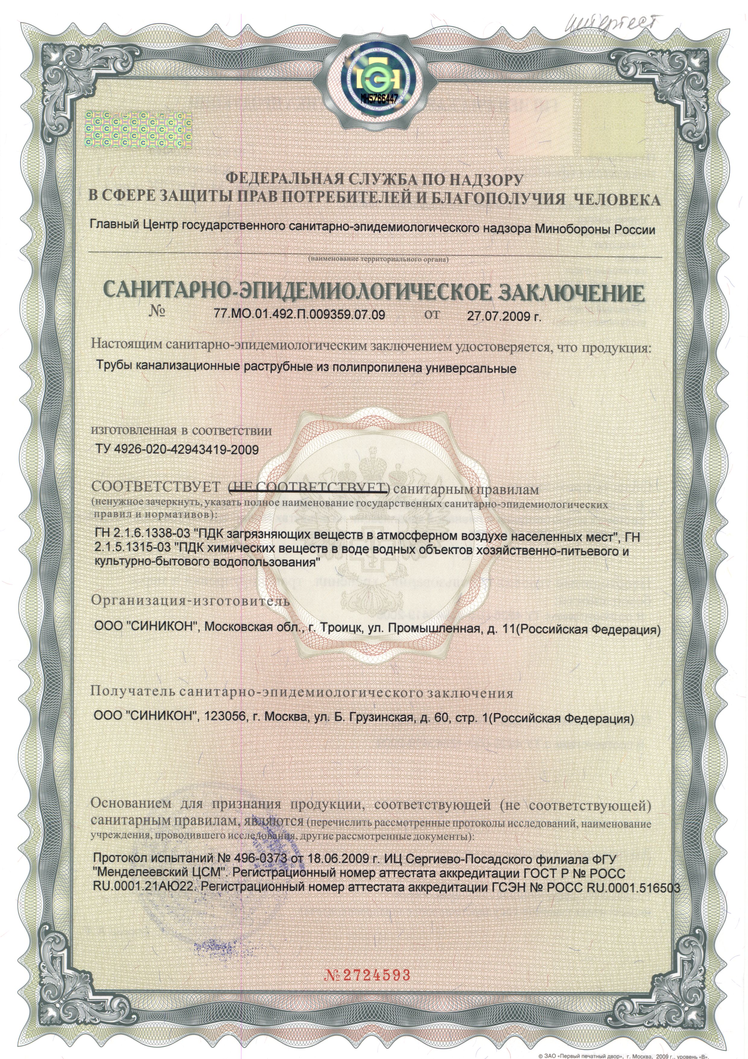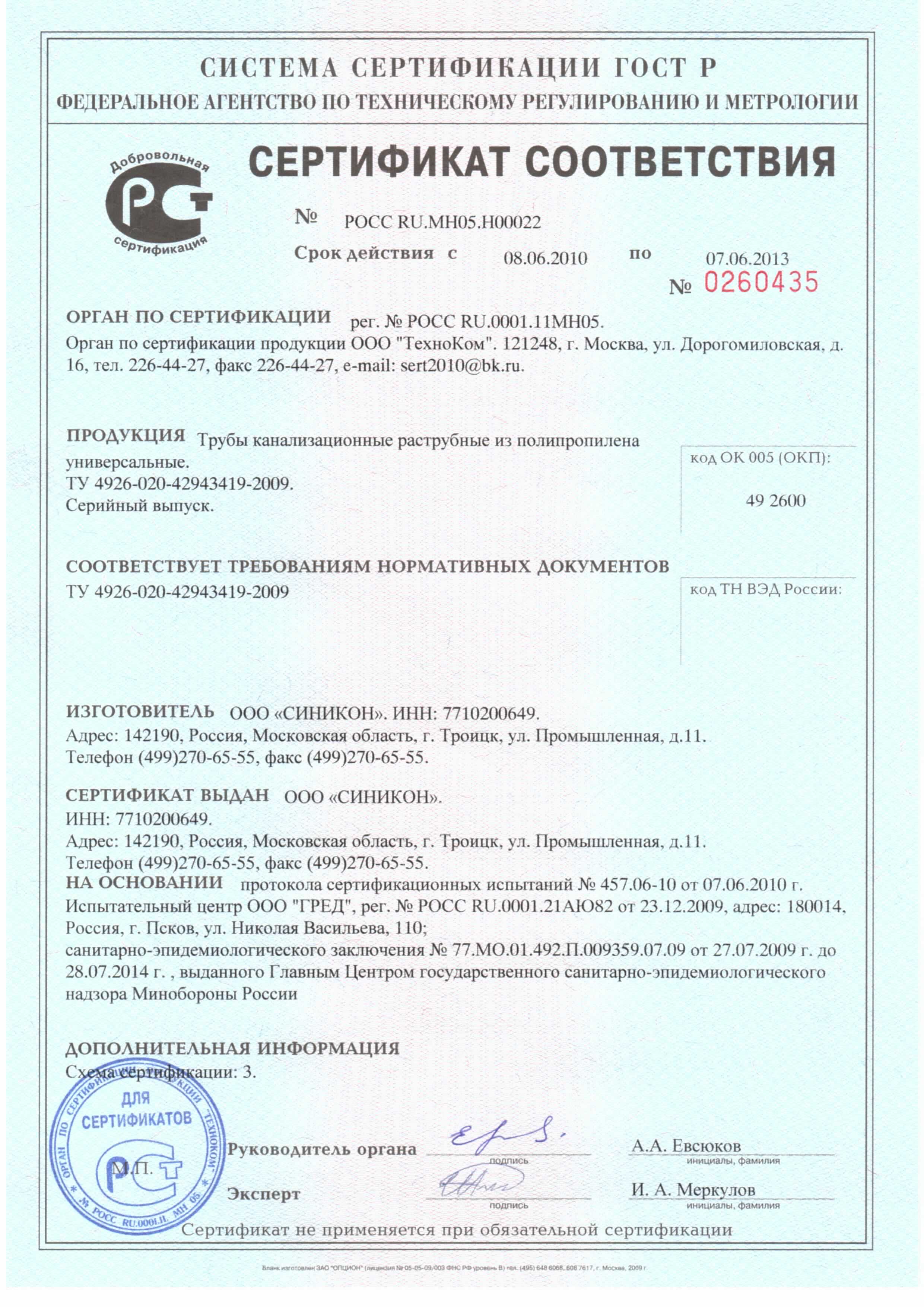 Гигиенический Синикон Трубы и фитинги внутренняя канализация 01.11.08 01.11.11