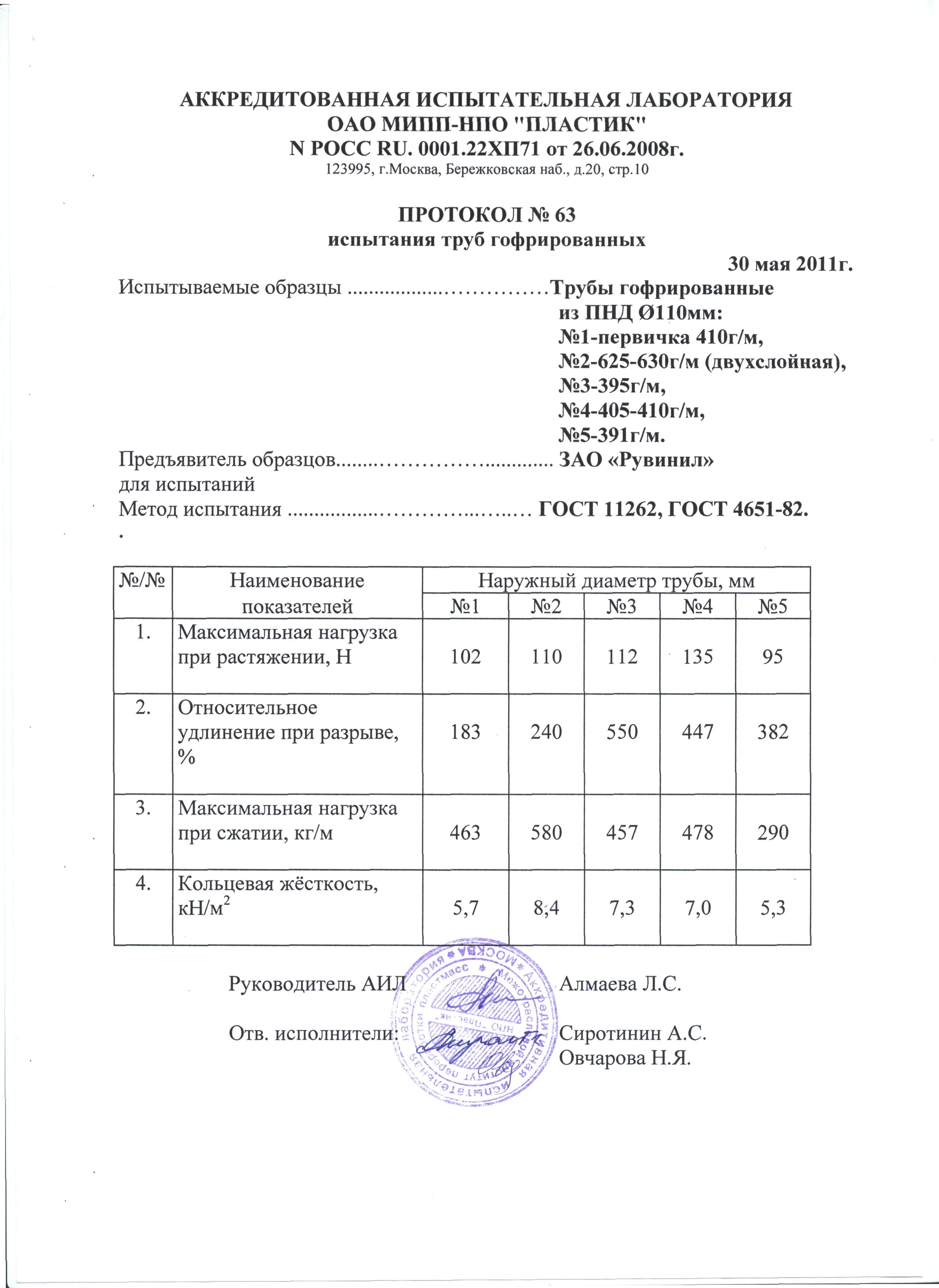 Соответствия  Трубы гофрированные из ПНД Ø16-63 Рувинил 27.04.12 26.04.15