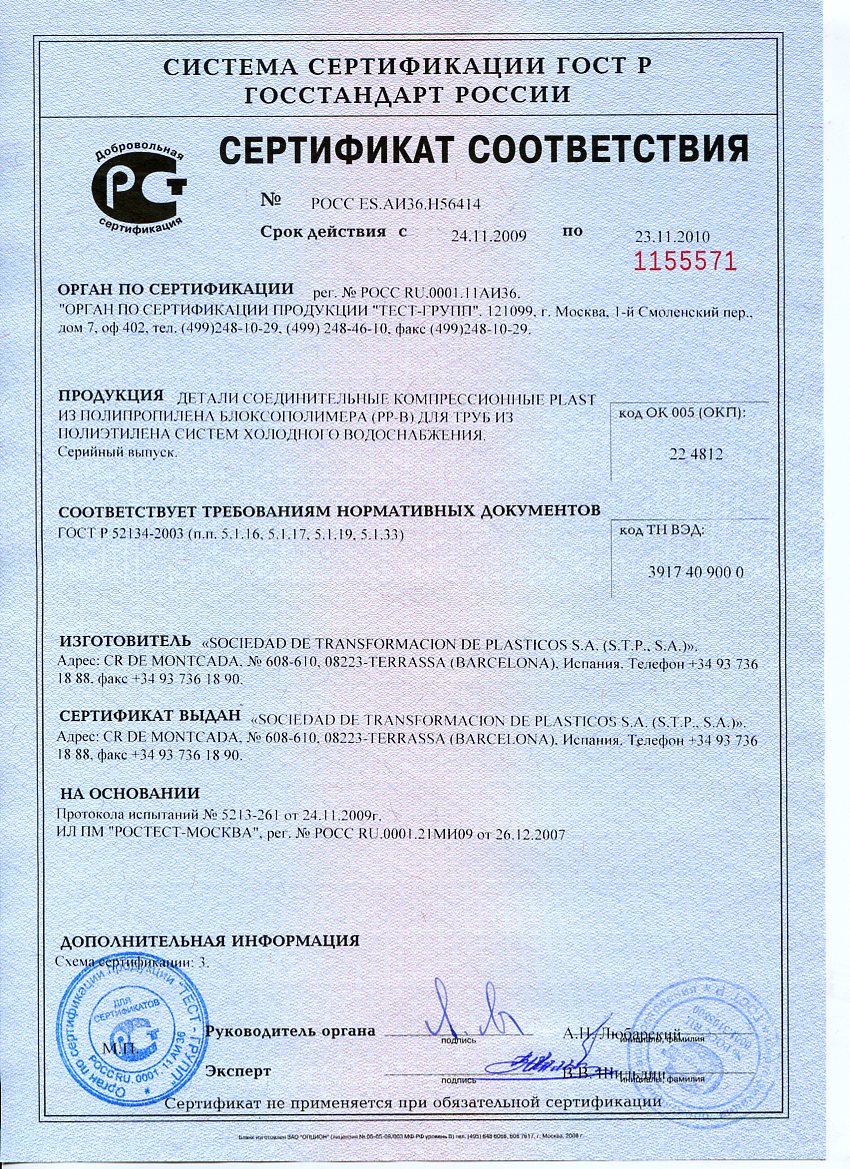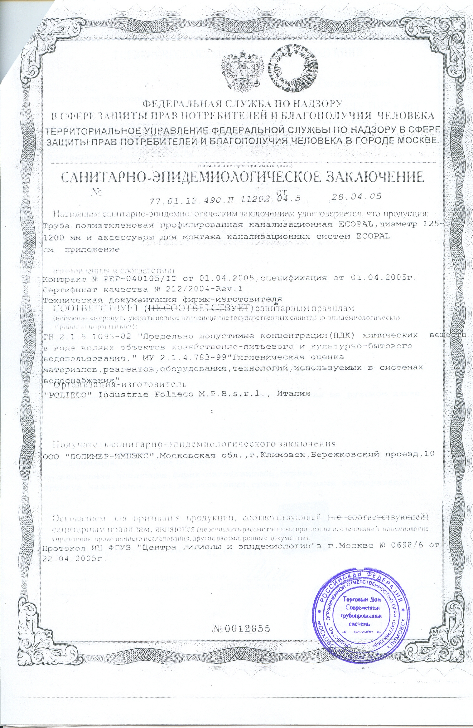 Гигиенический Синикон фитинги универсал канализация 28.07.09 15.09.14