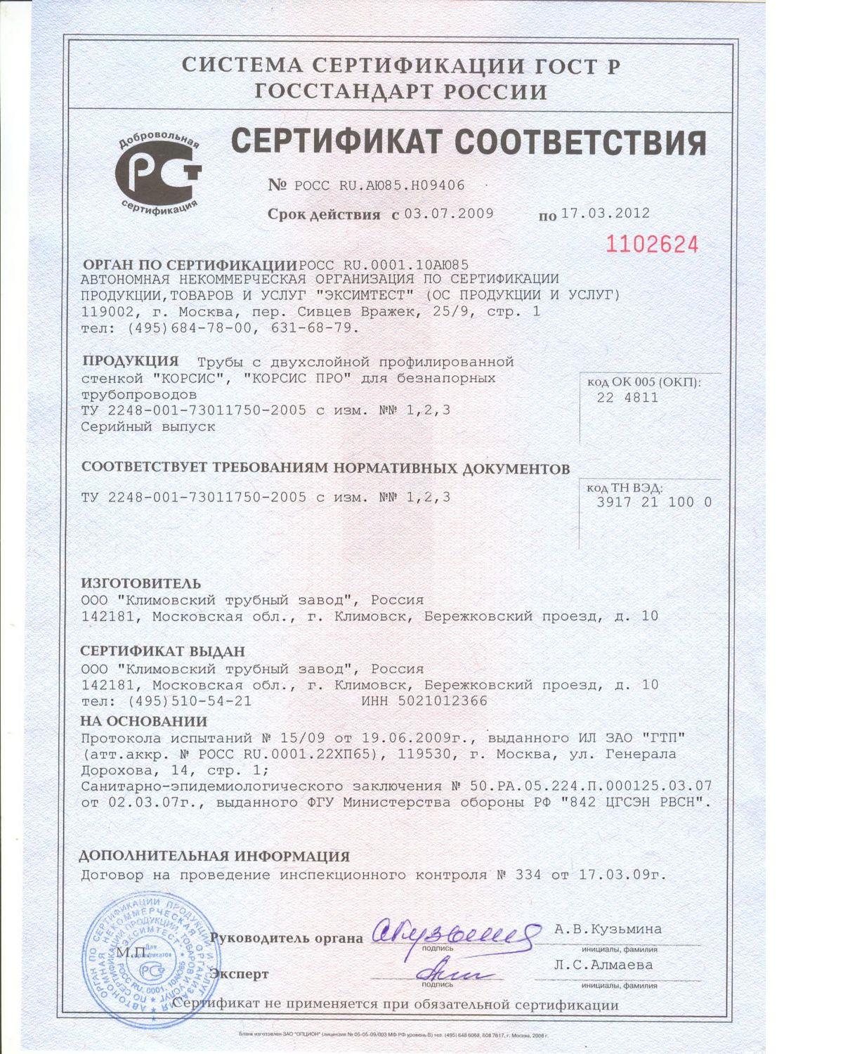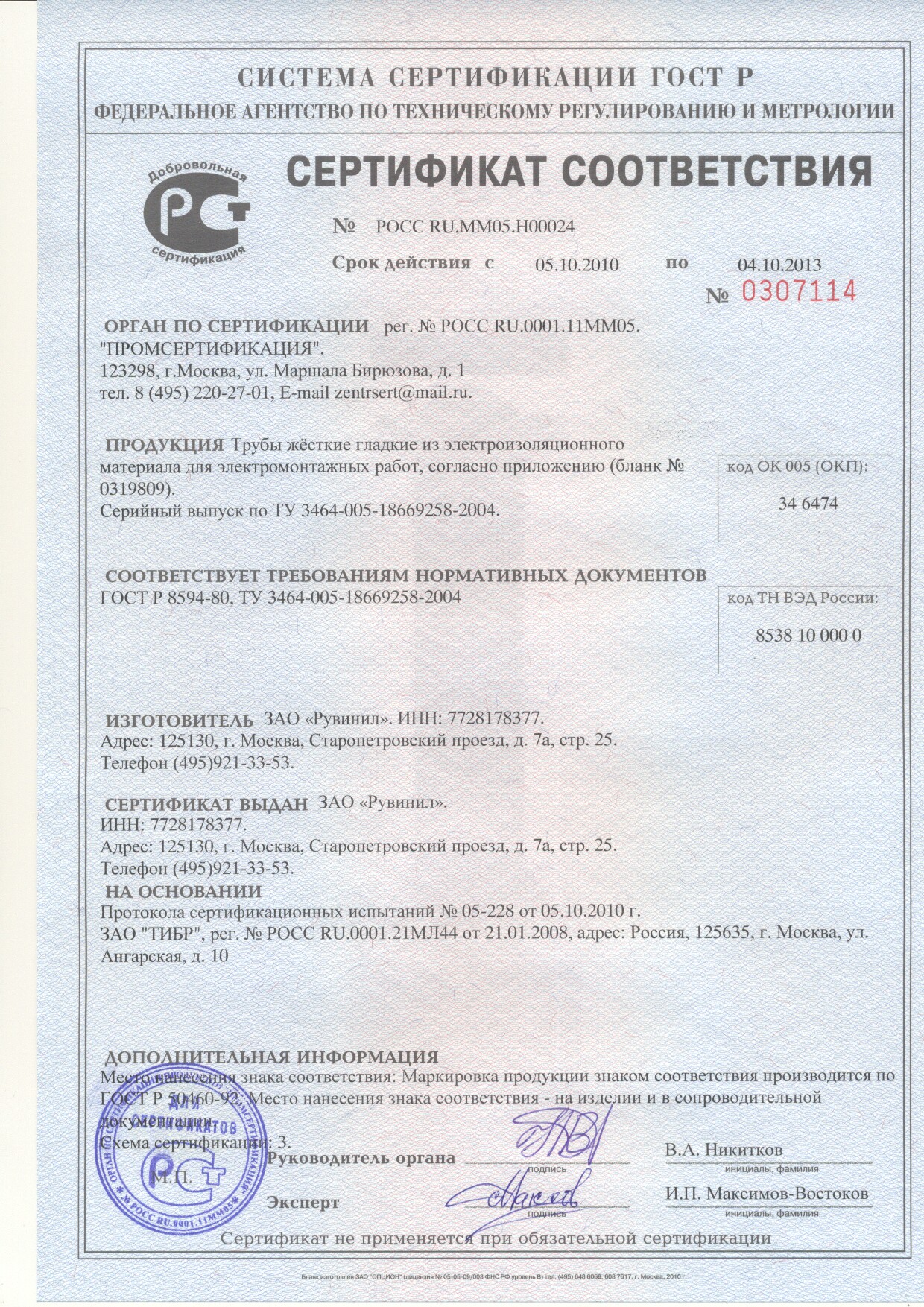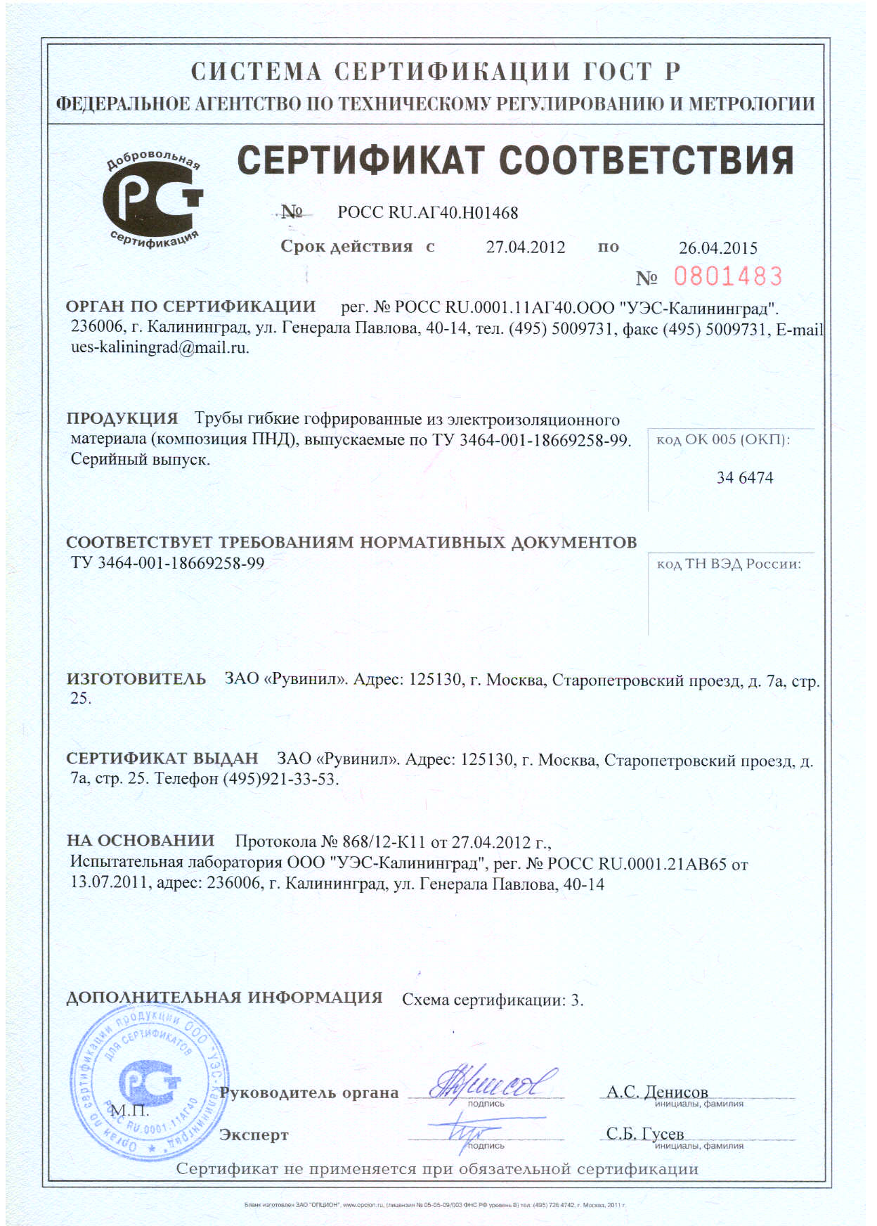 Соответствия Трубы гофрированные из ПВХ Ø16-63 Рувинил 27.04.12 26.04.15