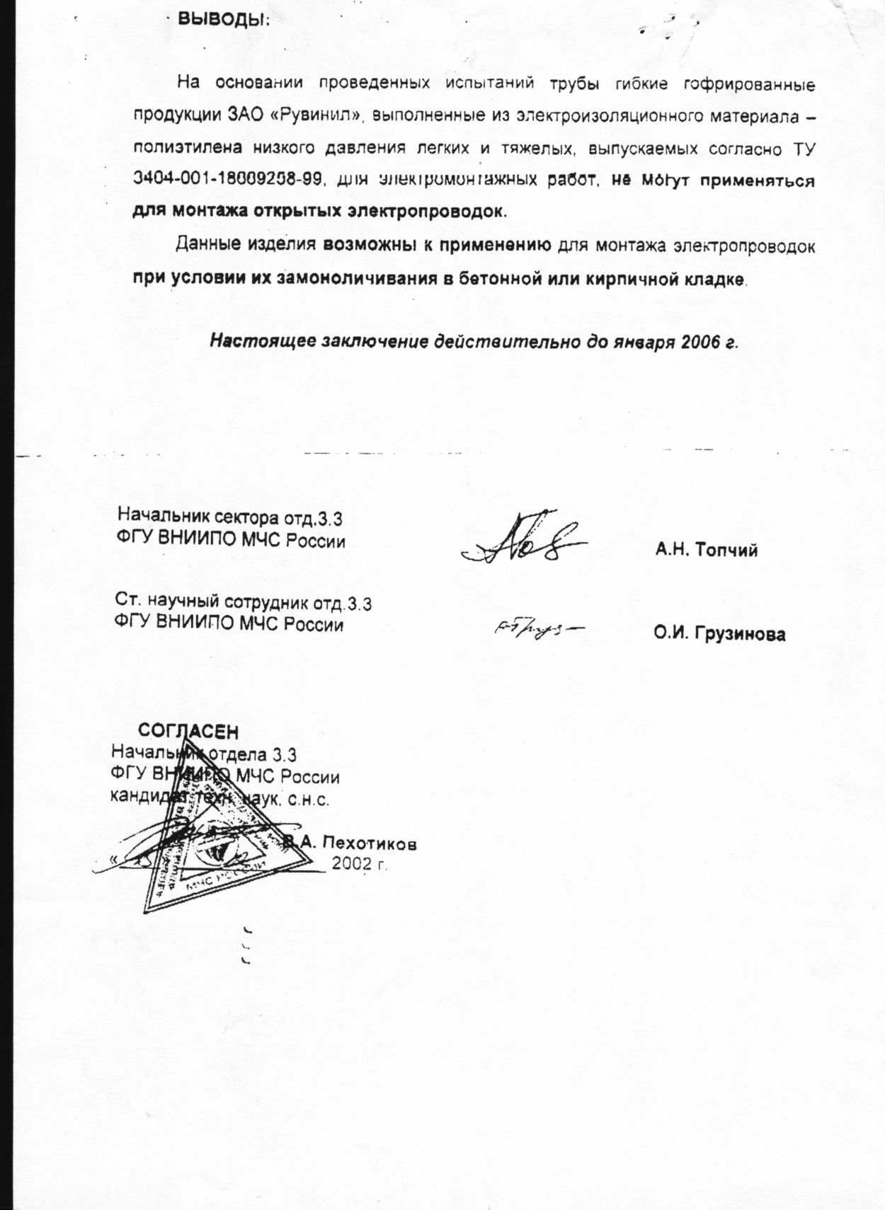 Заключение 2 3 4 Письмо о применении полиэтиленовых гофрированных труб Рувинил 28.07.06   .  .