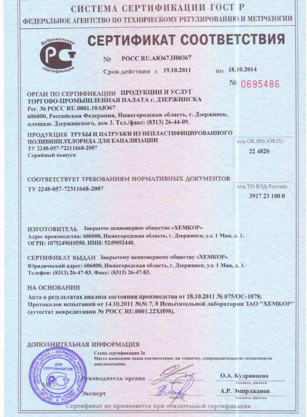 Соответствия  Химкор Трубы и фитинги внутренняя и наружная канализация 03.12.10 02.12.13