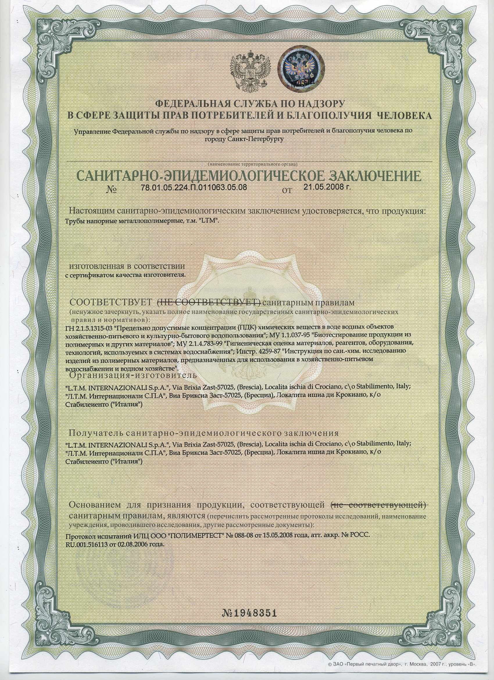 Гигиенический 2 Санитарно-Эпидемиологическое заключение LTM 21.05.08 21.05.13