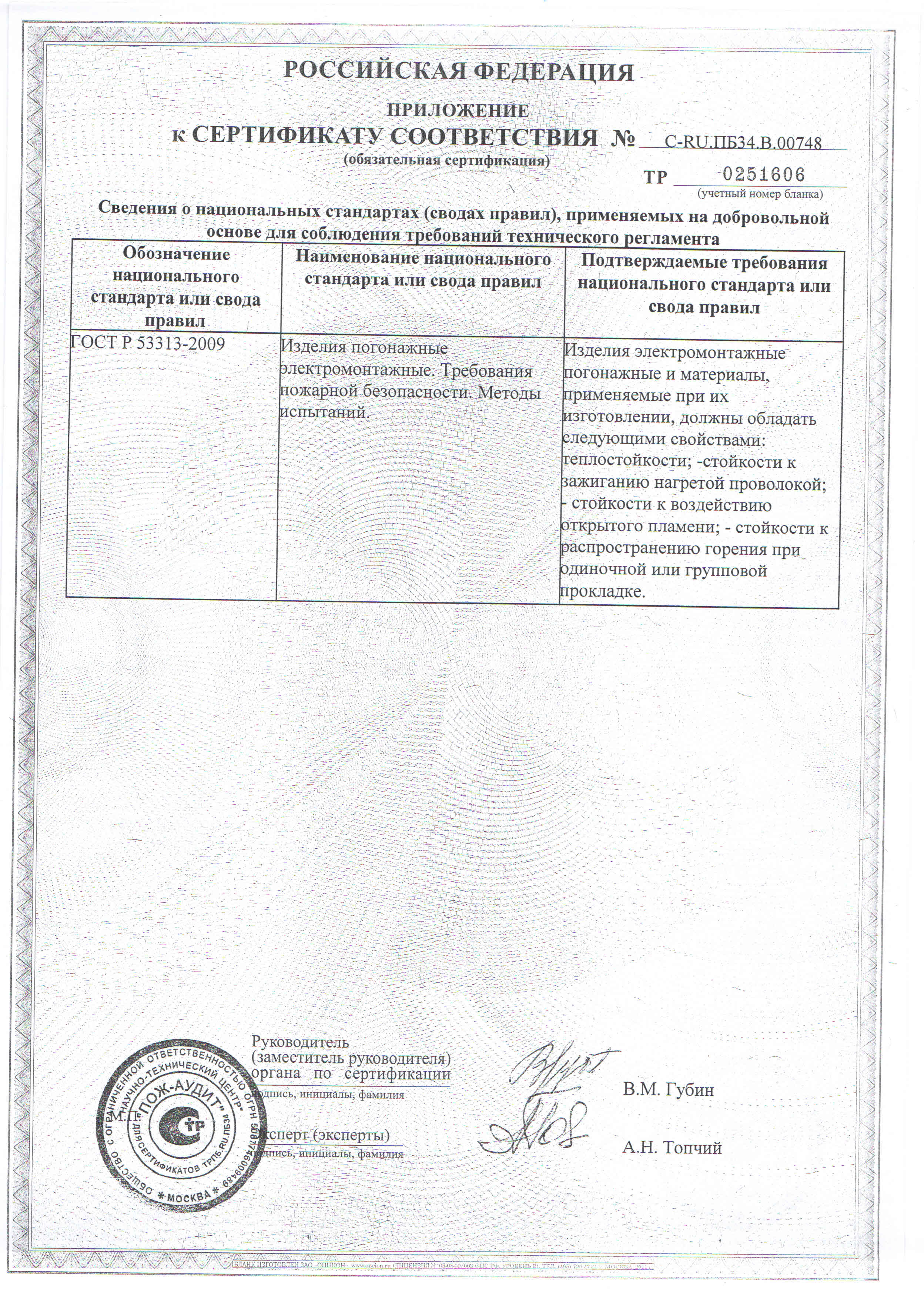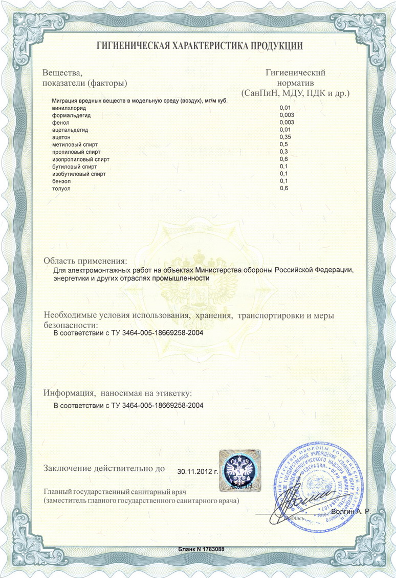 Заключение МЧС (PDF 5Мб) ОБ ИСПОЛЬЗОВАНИИ В ЭЛЕКТРОПРОВОДКАХ