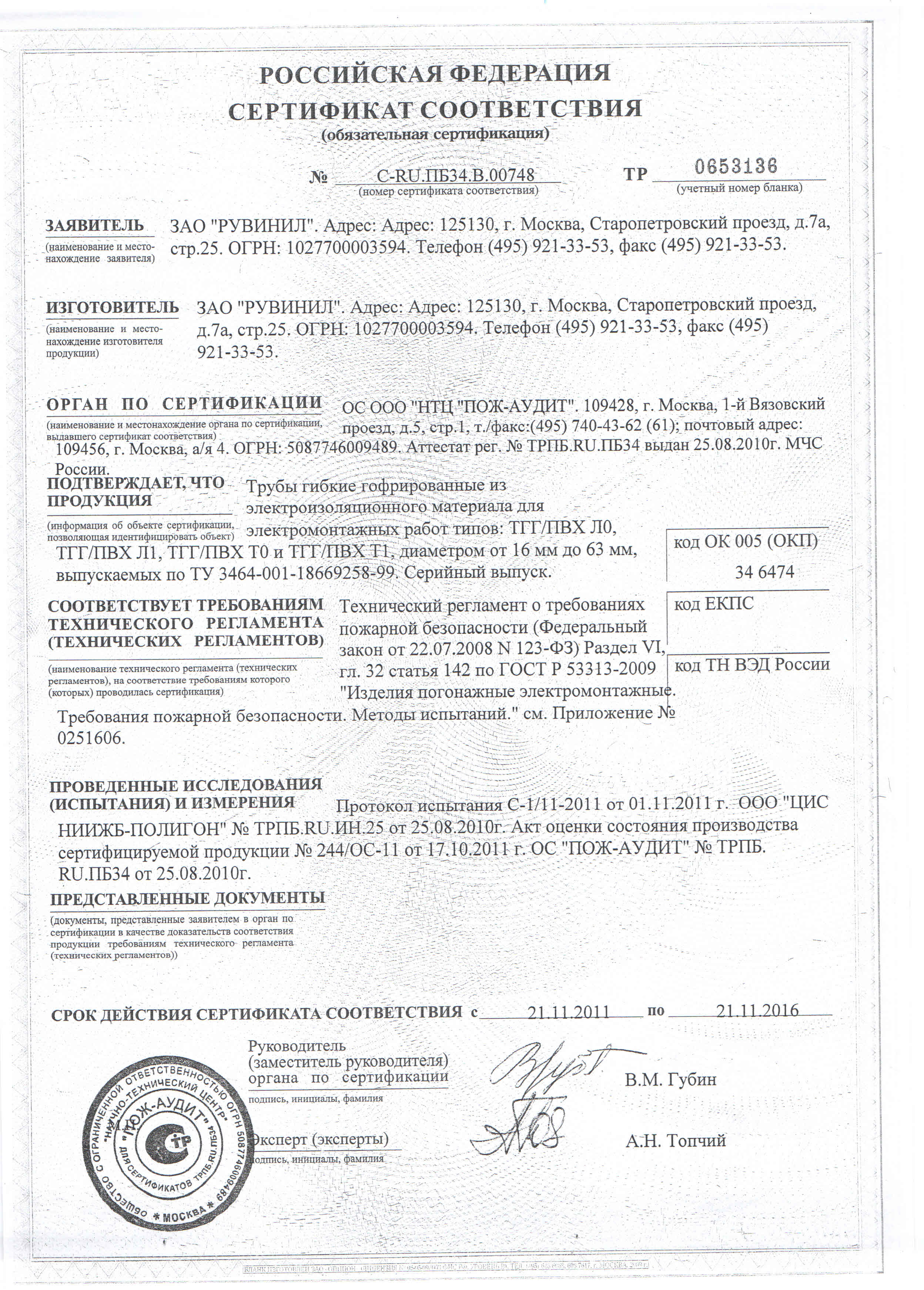 Пожарный 2 Трубы гофрированные из ПВХ Ø16-63 Рувинил 21.11.11 21.11.16
