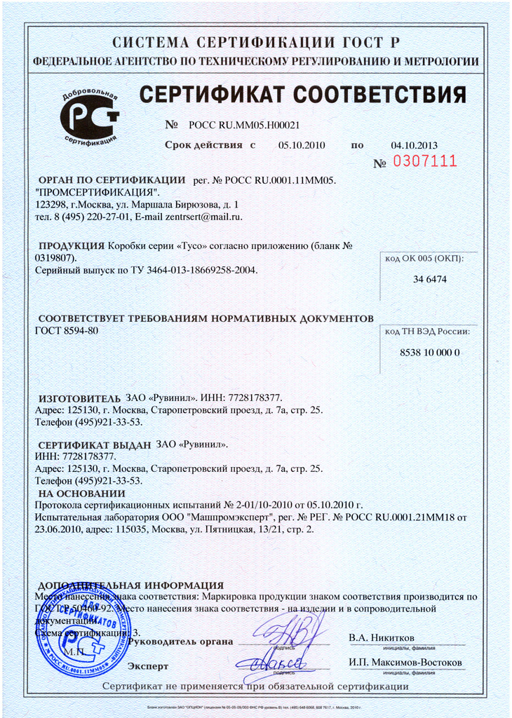 ЗАО «РУВИНИЛ» ПО ТУ 2248-001-59369841-2003, С УЧЕТОМ