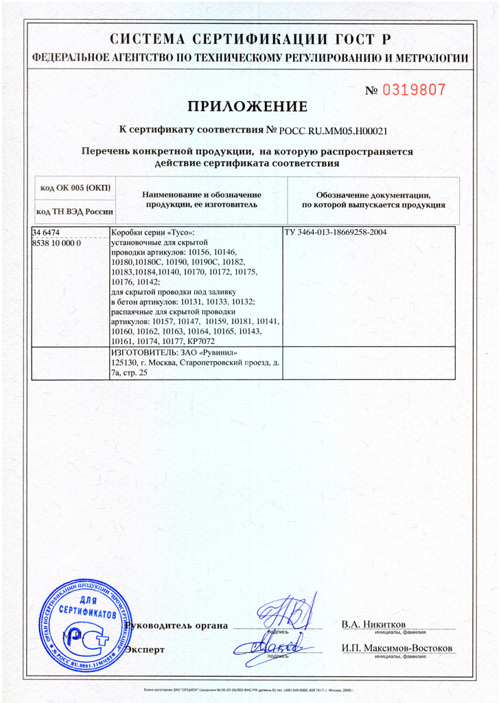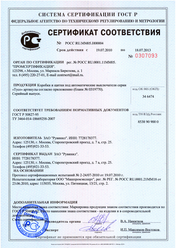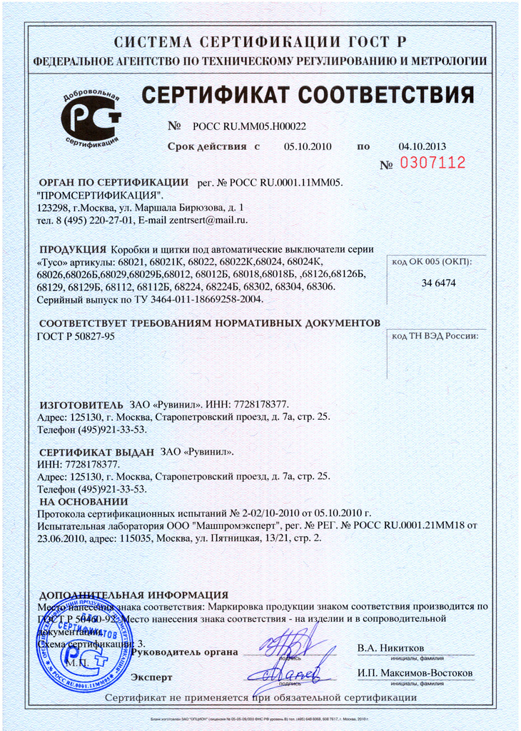 Соответствия Кабель-канал Рувинил 06.09.11 05.09.14