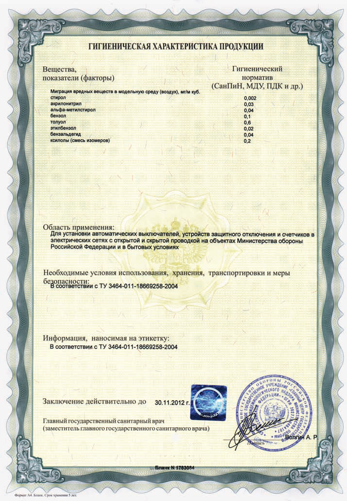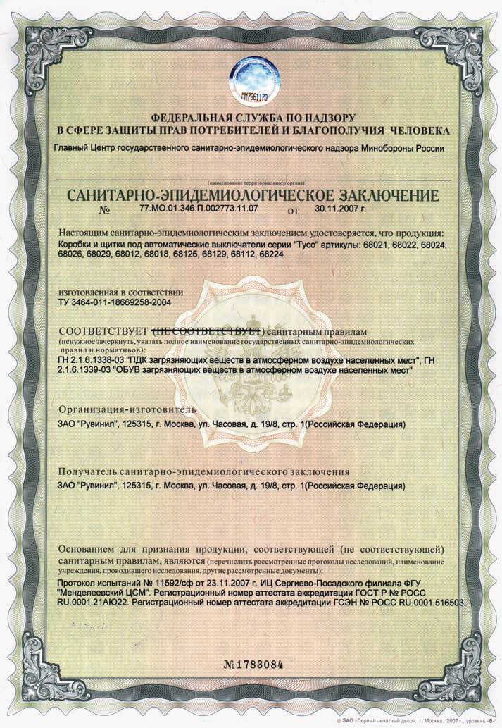 Гигиенический Санитарно-Эпидемиологическое заключение 04.03.09 04.03.14