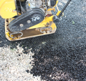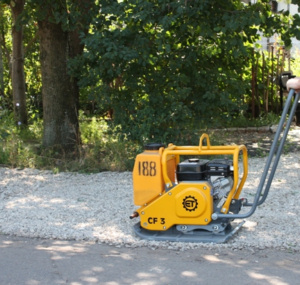 Протрамбовать щебень при помощи тяжелой виброплиты или виброкатка.