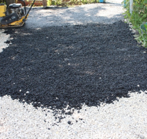 Применение холодного асфальта для въезда и выезда на дачный участок и для устройства тропинок обеспечит отсутствие травы, не будет зарастать дорога.