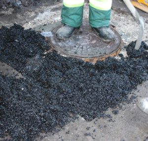 Холодный асфальт применяют для ремонта различных видов ям на дороге в СПб. C помощью холодного дорожного асфальта можно делать заезд для машины на участок, асфальтировать площадку перед гаражом, делать заезд на поребрик, заасфальтировать яму покруг канализационного люка.